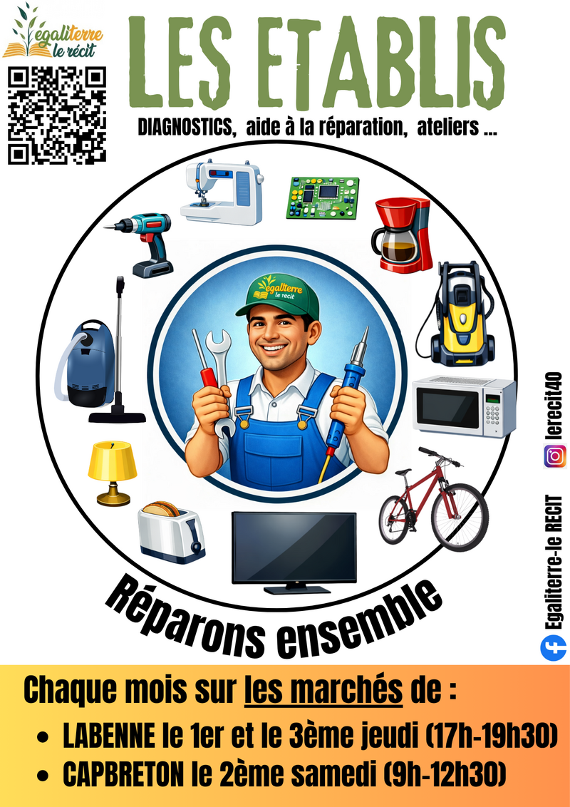 Venez nombreux faire réparer vos objets et leur donner une seconde vie (électroménager, vélos, etc.) !